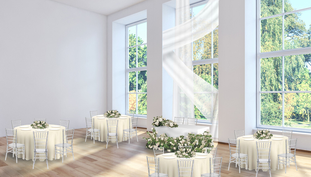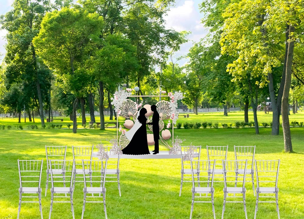 Без знания перспективы невозможно создать красивую визуализацию свадебного оформления. Перспектива позволяет выбирать правильные ракурсы и пропорции предметов декора, свадебных арок, столов, задников, стульев и грамотно внедрять их в фотографии площадок, на которых планируется свадебное мероприятия.