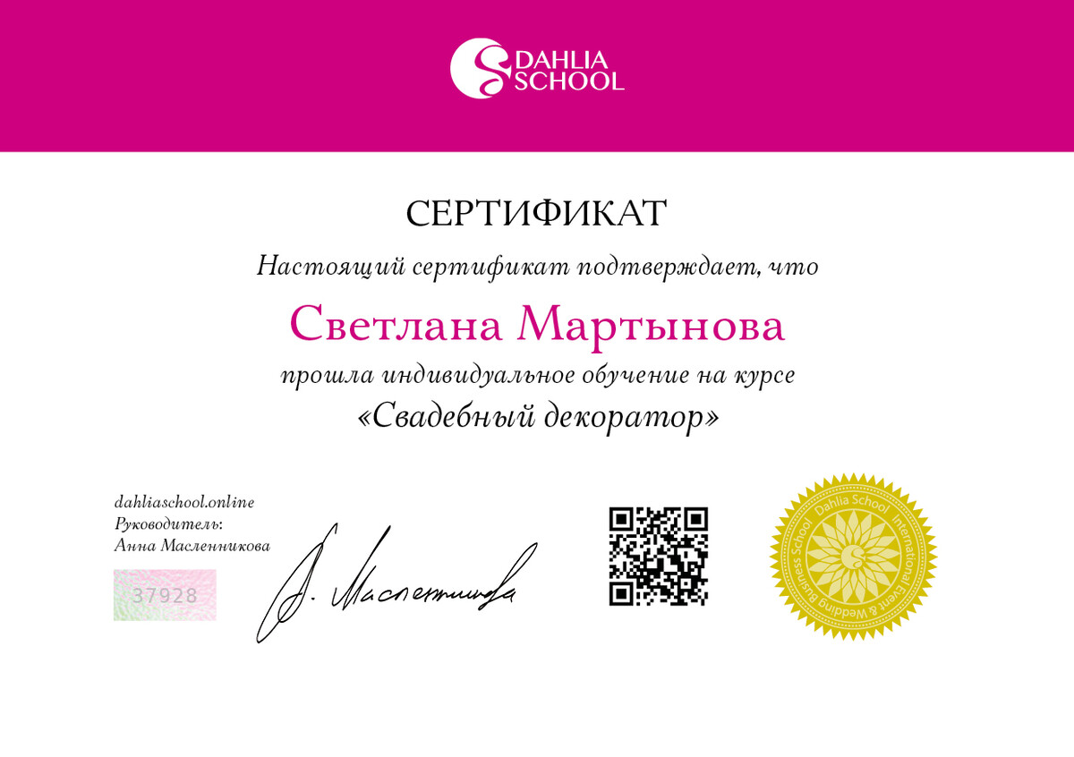 После успешного прохождения курса вы получаете именной Сертификат школы